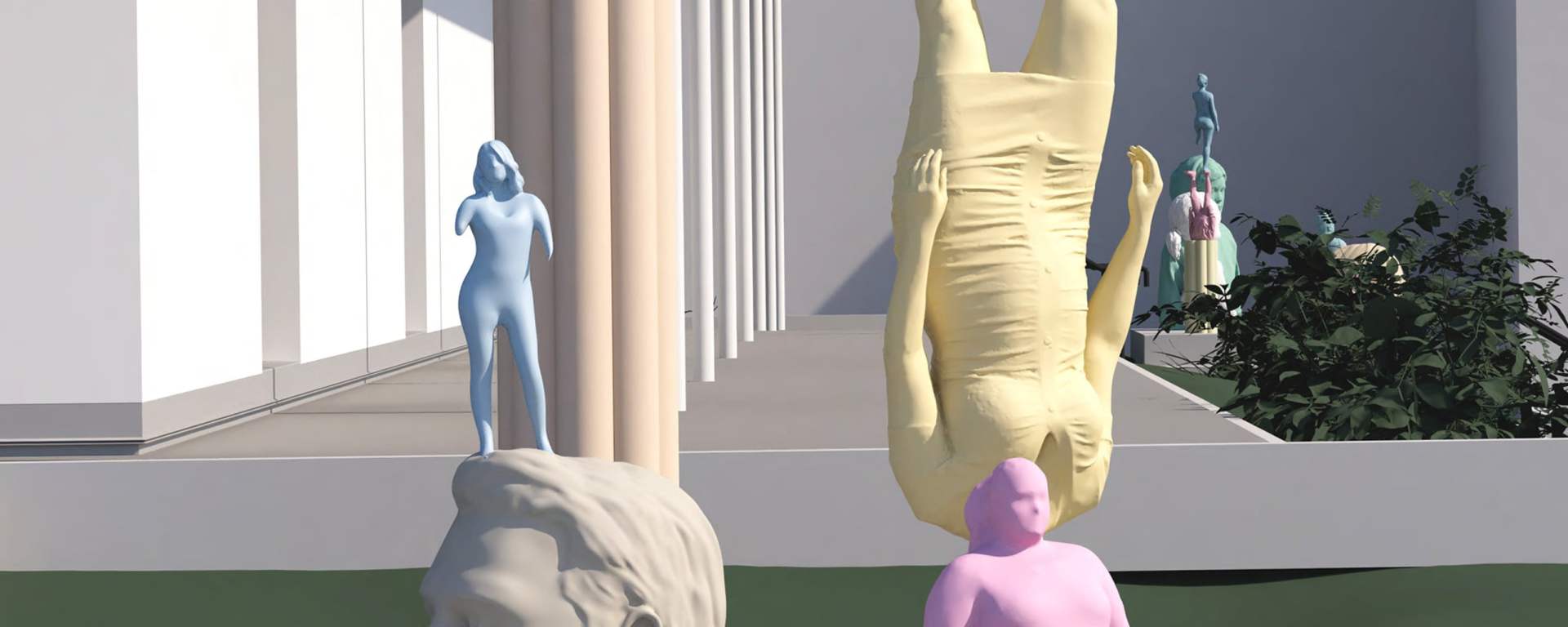 L’ensemble sculptural proposé par Frédéric Laforge se déploie sur les sites localisés à chacune des deux entrées principales. L’artiste y propose une série de personnages aux allures diverses dont le rendu réaliste est contrecarré par des formats invraisemblables et une palette chromatique douce. Parmi les protagonistes, certains sont en situation de handicap, d’autres sont âgés. L’on retrouve ainsi des sujets chers à Frédéric Laforge, rendus visibles grâce à son langage visuel empreint d’empathie, de bienveillance et d’humour. Il célèbre, comme l’évoque son titre, la diversité des capacités corporelles, propre à chacun-e dans un univers marqué par le jeu et les sports aquatiques.